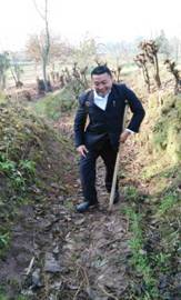 田間泥濘時常出現(xiàn)一位拄著拐杖,腿腳不便